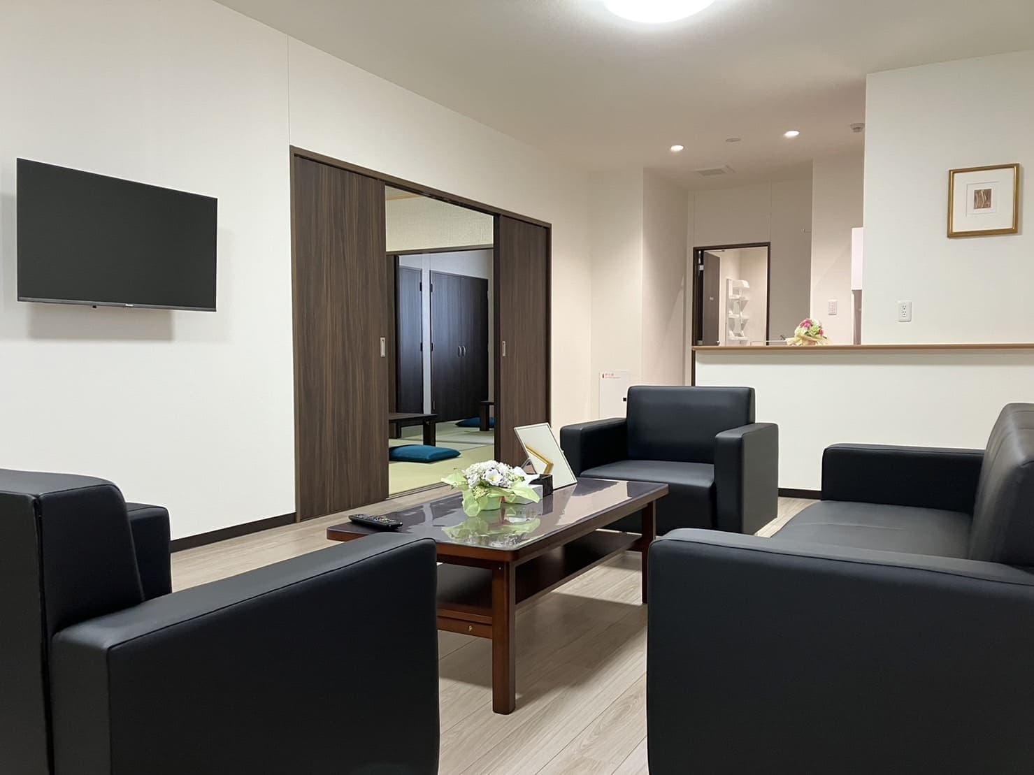 家族葬・一般葬・法事・法要などに対応できる充実設備。控室はもちろん、仮眠室など故人様とご家族がゆっくりと過ごしていただける空間をご用意。