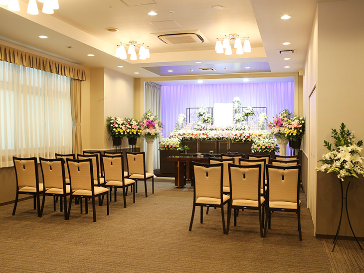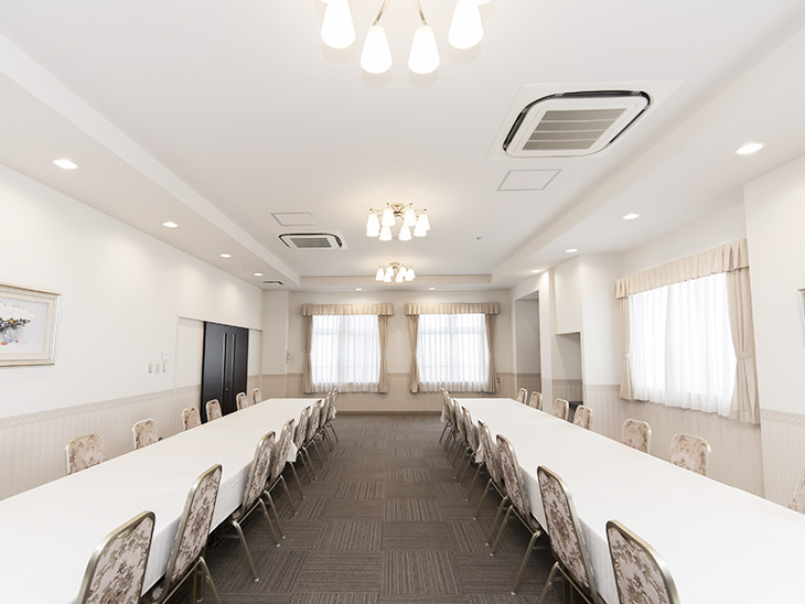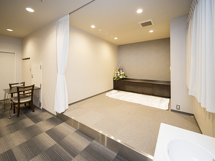 - 家族葬・一般葬・法事・法要などに対応できる充実設備。控室はもちろん、仮眠室など故人様とご家族がゆっくりと過ごしていただける空間をご用意。