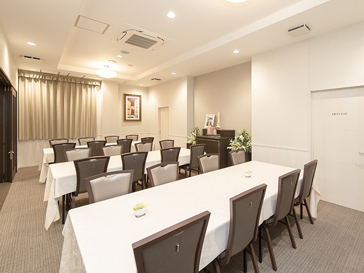 - 家族葬・一般葬・法事・法要などに対応できる充実設備。控室はもちろん、仮眠室など故人様とご家族がゆっくりと過ごしていただける空間をご用意。